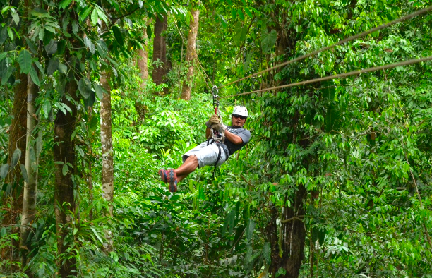 Canopy Safari offers round trip transportation, one meal, fruit snack, butterfly farm, reptile farm, 11 zip lines, 22 platforms, 2 hanging bridges, 2 rappel lines, 1 Tarzan swing, 1 free fall.